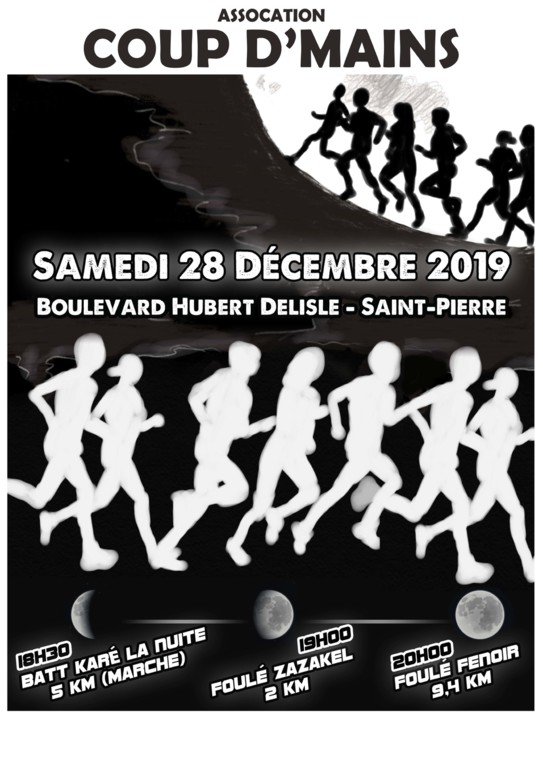Suite à une réunion avec les services de la mairie, Foulé Fénoir, Foulé Zazakel et Batt Karé la Nuite auront bien lieu le Samedi 28 Décembre 2019 sur le Front de Mer de St-Pierre.