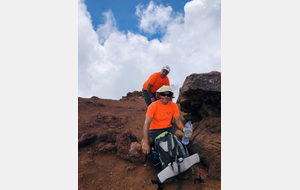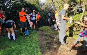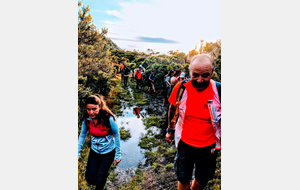 Après une bonne pause déjeûner, on entreprend la descente vers le gîte où la réserve de "dodos" du gardien a pris un sérieux coup! Il faisait chaud et on avait soif. Aie aie aie, 16h on quitte le gîte, c'est sûr il faudra brancher les "frontales". Après une longue et interminable descente, on arrive enfin au parking vers 20h30 pour certains, 21h30 pour d'autres et 22h pour le groupe à Jean-Pierre bien épaulé par Joseph.