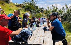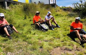 Arrivé au gîte le premier groupe fait une une pause en attendant l'arrivée de ceux qui ferment la marche.